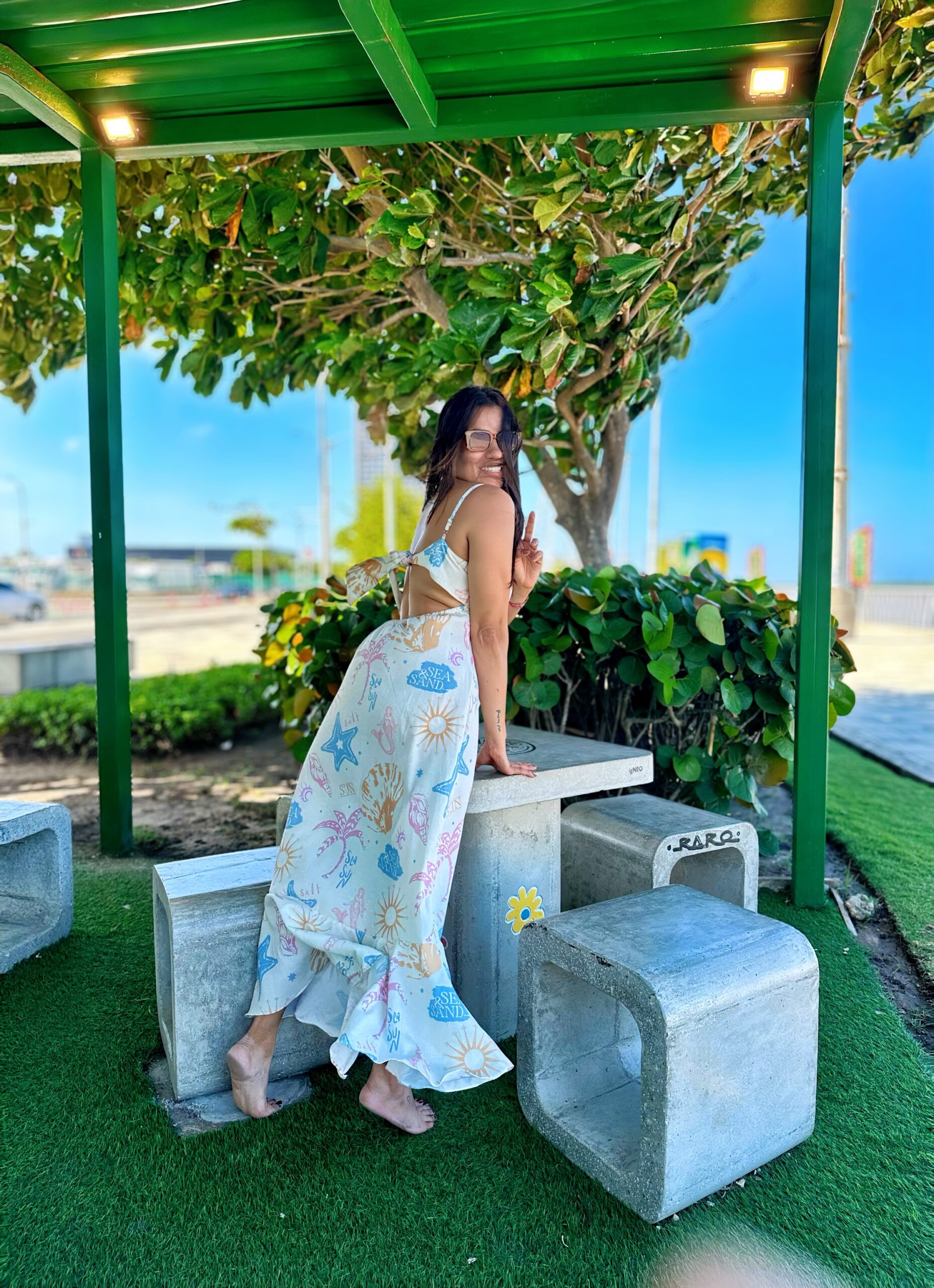 Confeccionado en lino subliminado, un material ligero, transpirable y de excelente calidad, ofrece comodidad absoluta y una caída natural que realza tu figura con delicadeza.